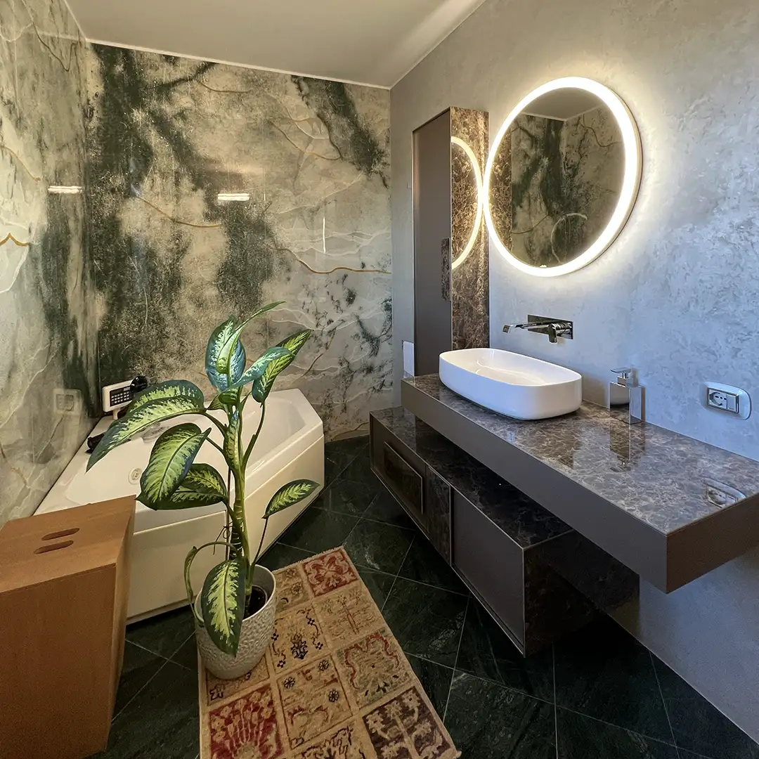 Lavoriamo con Kerlite di alta qualità, un materiale in gres porcellanato sottile, resistente, leggero e versatile, perfetto per rivestire pareti interne, bagni, cucine, facciate e spazi pubblici. Le nostre stampe digitali su Kerlite vengono realizzate con sistemi di stampa ad alta definizione e fissate tramite trattamenti specifici che garantiscono durata, resistenza all’umidità e facilità di pulizia.
